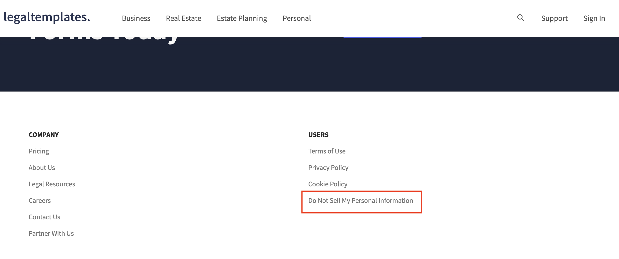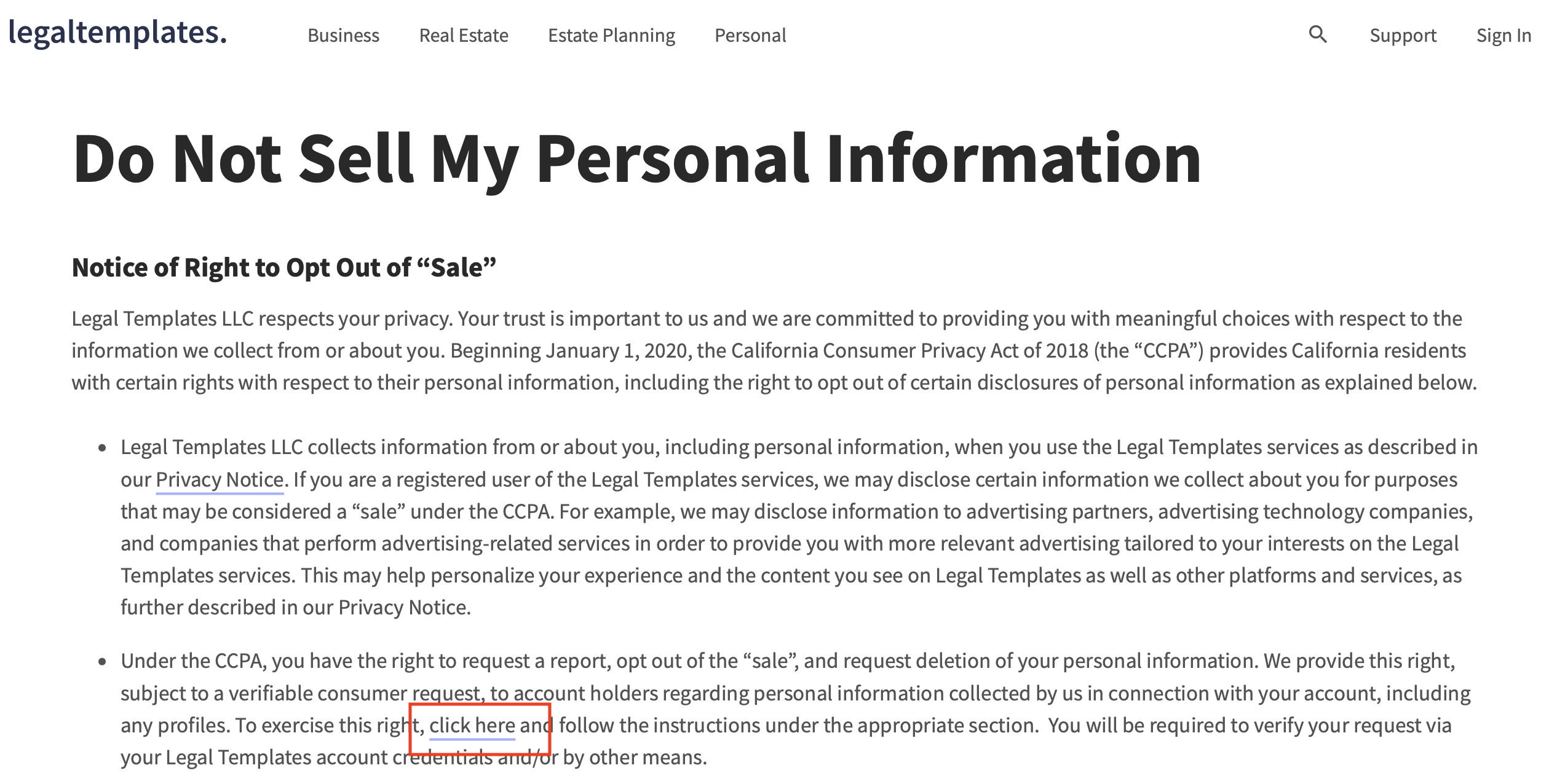 - Nella pagina “Non vendere le mie informazioni personali”, trova la sezione “Avviso di diritto alla rinuncia alla 'vendita'”.