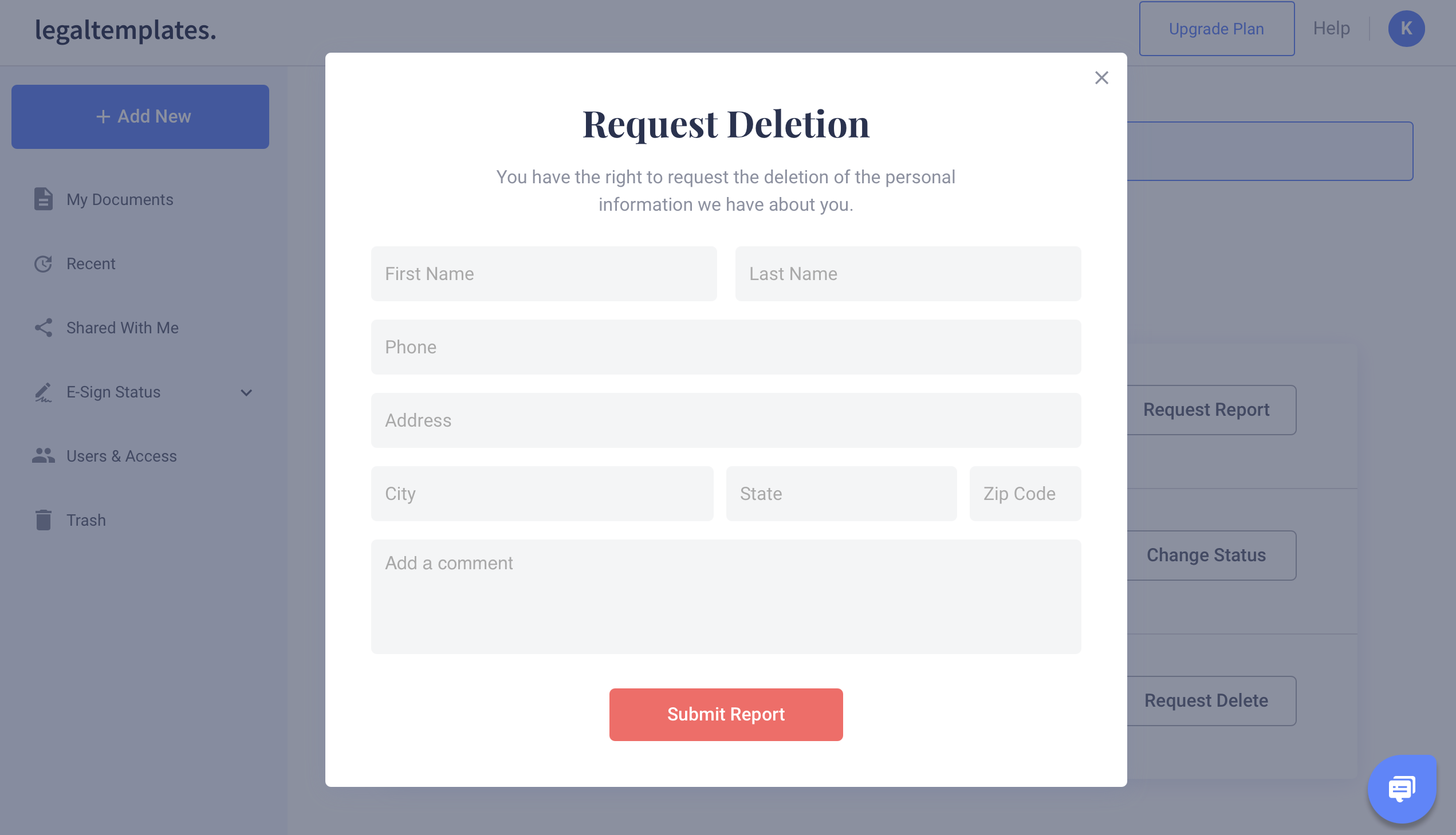 Se desideri eliminare le informazioni del tuo account su LegalTemplates.net, segui questi passaggi: